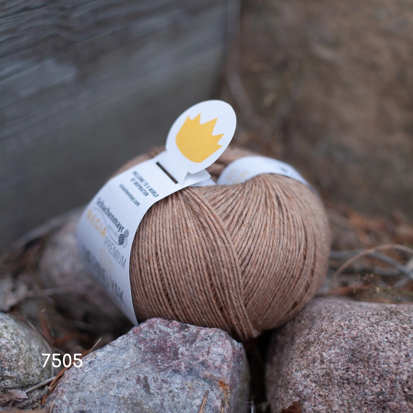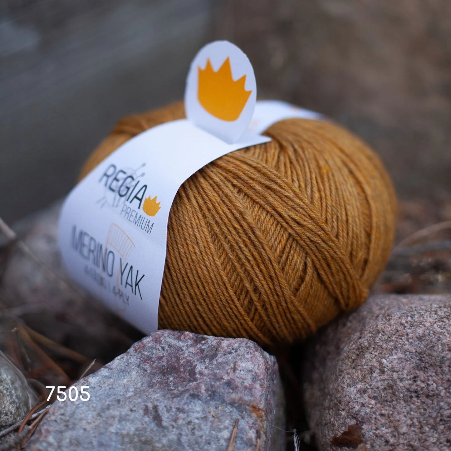 Super warm Regia Premium Merino Yak makes super comfy socks—and other accessories and garments! This fingering-weight yarn blends high-quality merino wool from South Africa with yak and polyamide. That touch of yak fiber, more insulating than sheep’s wool, brings an extra warmth to your handknits. Since it’s undyed, the yak also lends a special mélange effect to this yarn’s otherwise deeply saturated colors