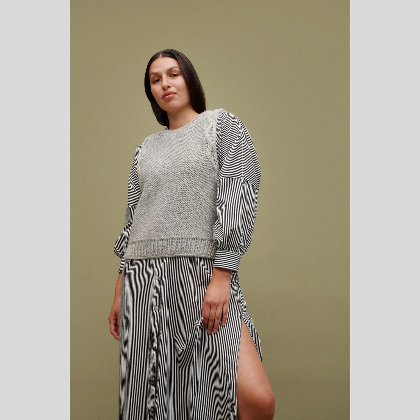 - (11 sweaters, 7 cardigans, 4 slipovers, 3 vests, 1 dress, 8 scarves, 2 cowls, 6 hats, 5 mittens, 2 pillows, 1 balaclava, 1 bag, 1 blanket)