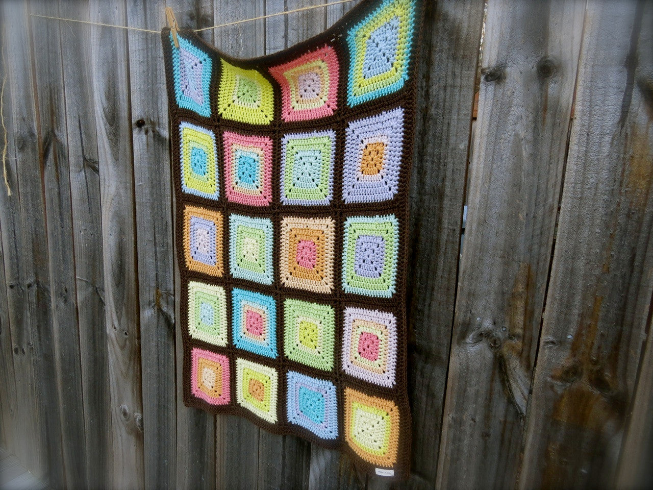 sizing: approximately 26” x 34” before blocking / each block measures 6” square
