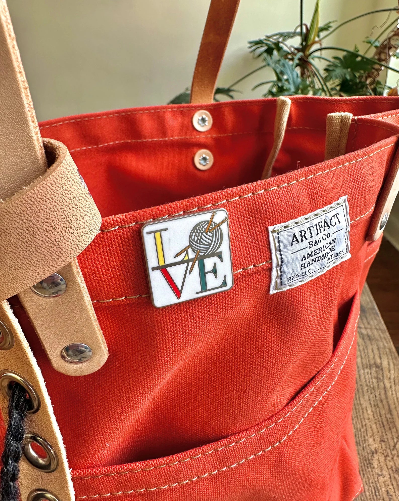 Show your love (or full-blown obsession) for knitting with this high-quality hard enamel pin. Measures 1" in diameter with a secure rubber backing — perfect for your project bag, jacket, or notions pouch.