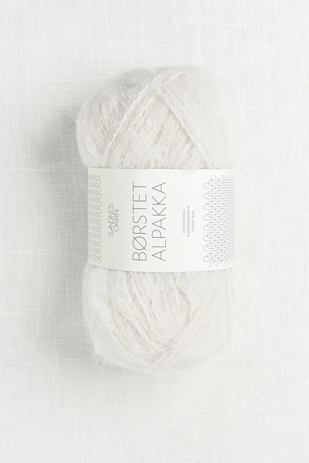 Borstet Alpakka (Brushed Alpaca) is a light, fluffy yarn spun with brushed alpaca fiber & nylon. This soft, cozy yarn has a fantastic halo & knits into luxe garments & accessories. The yarn consists of a nylon strand plied together with the alpaca to ensure that knits will maintain shaping. Simple stitch patterns such as stockinette & ribbing look best in this yarn. The yarn comes in a palette of nature inspired neutrals, as well as soft colors.