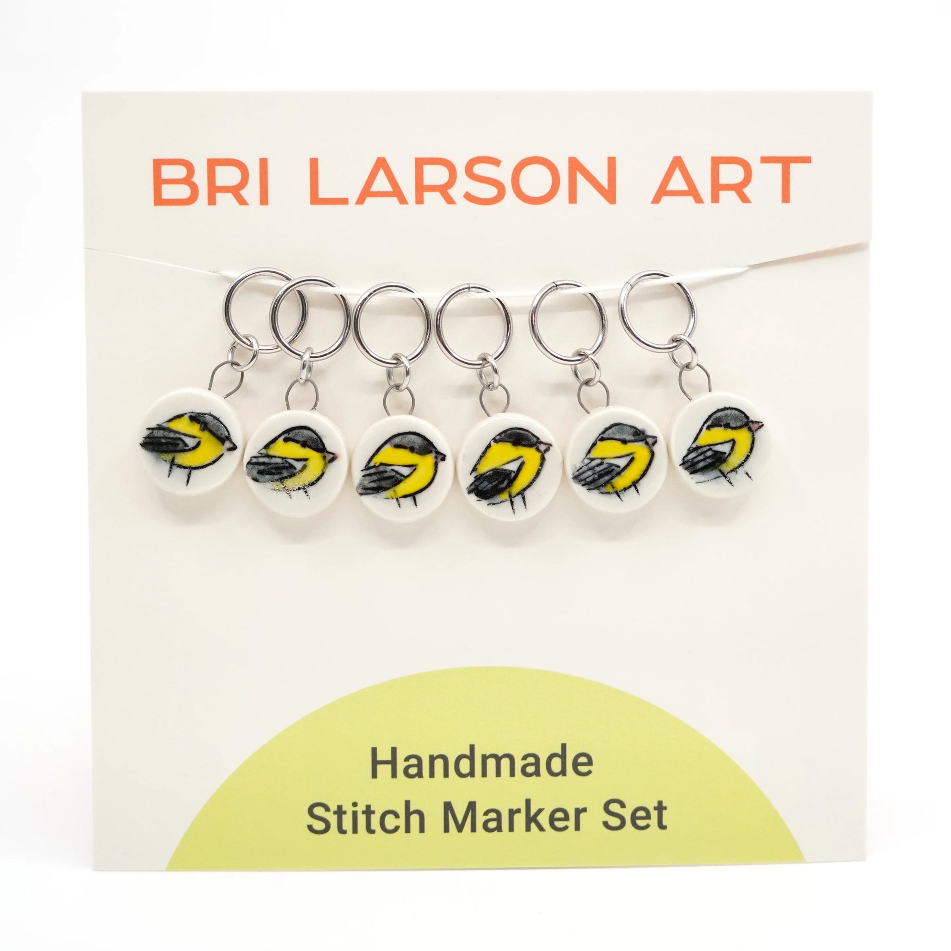 Add some handmade stitch markers to your knitting project! These little stitch markers come in a set of 6 and are shown on a size 10 needle.