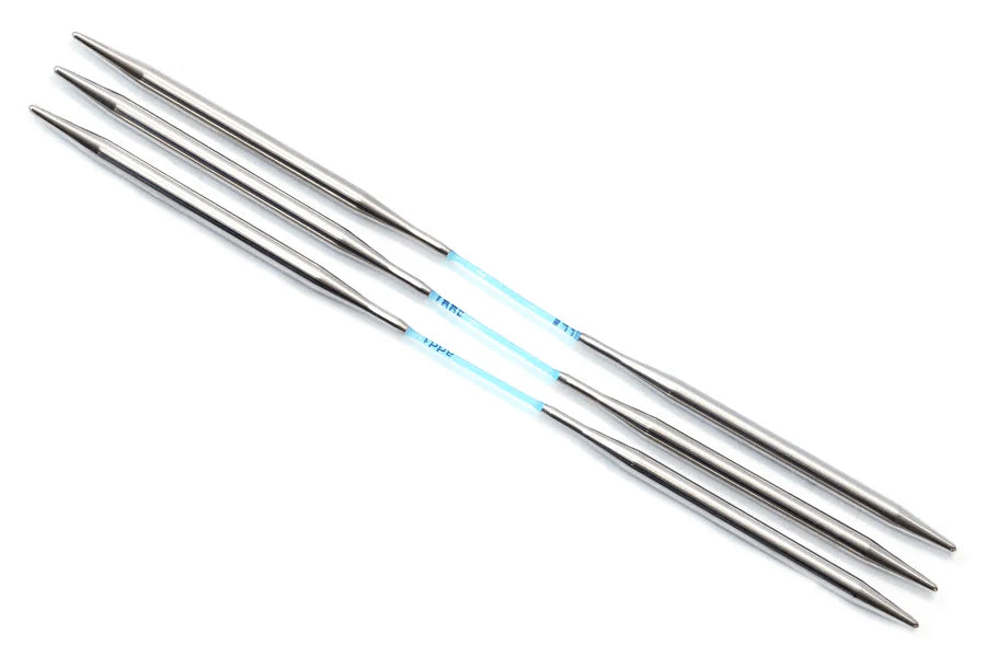 Cast-on to an effortless new method of knitting socks, cuffs, hats, and many of other projects which are worked in the round, with the addi FlexiFlips. Made specifically for North America, these specially designed 21cm circulars (3.5" tips with 1" cord) rest comfortably in the hand, and act as flexible double pointed needles. One set of needles includes three individual needles.