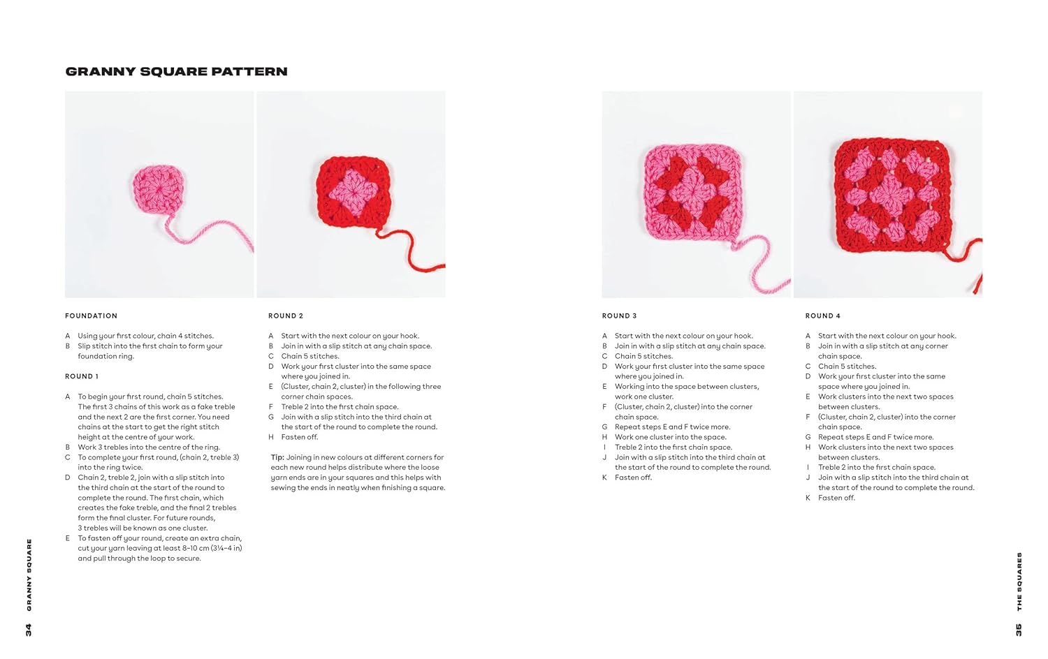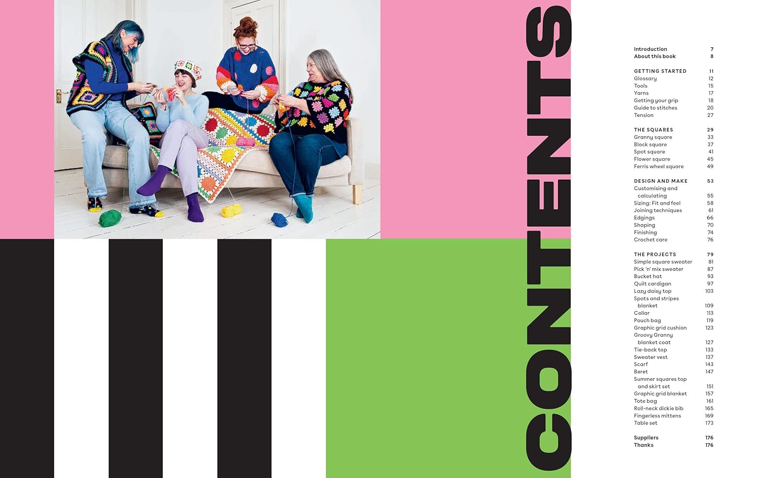 With Hip to Be Square learn how to transform five simple granny squares into 20 bold and bright designs featuring size-inclusive garments, stylish accessories and beautiful homewares. All five granny squares can be completed in a wide range of yarn weights, colors, and types; they can be extended to create bigger blocks, and they are interchangeable within the pattern designs, giving the reader unlimited options and inspiration. As well as the easy-to-follow instructions and step-by-step illustrations, Katie also includes tips on how to care for your makes, so they stand the test of time – the perfect antidote to fast fashion.