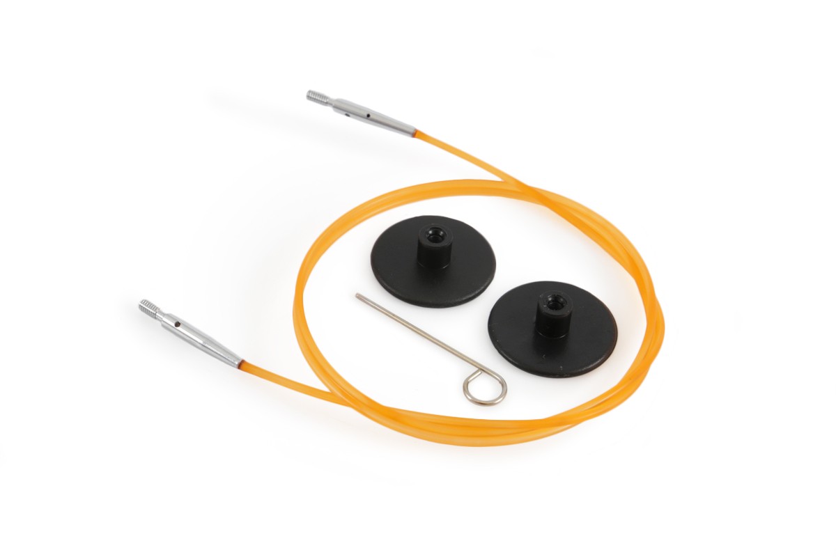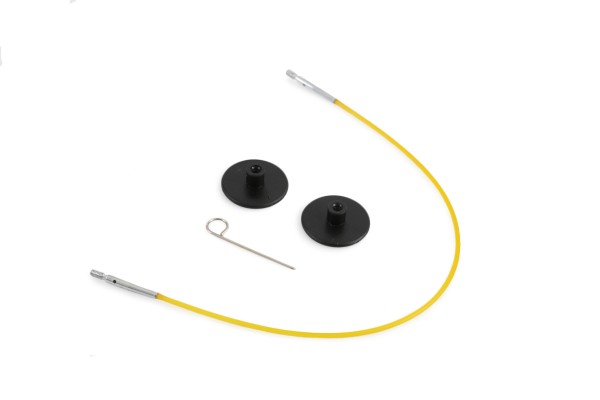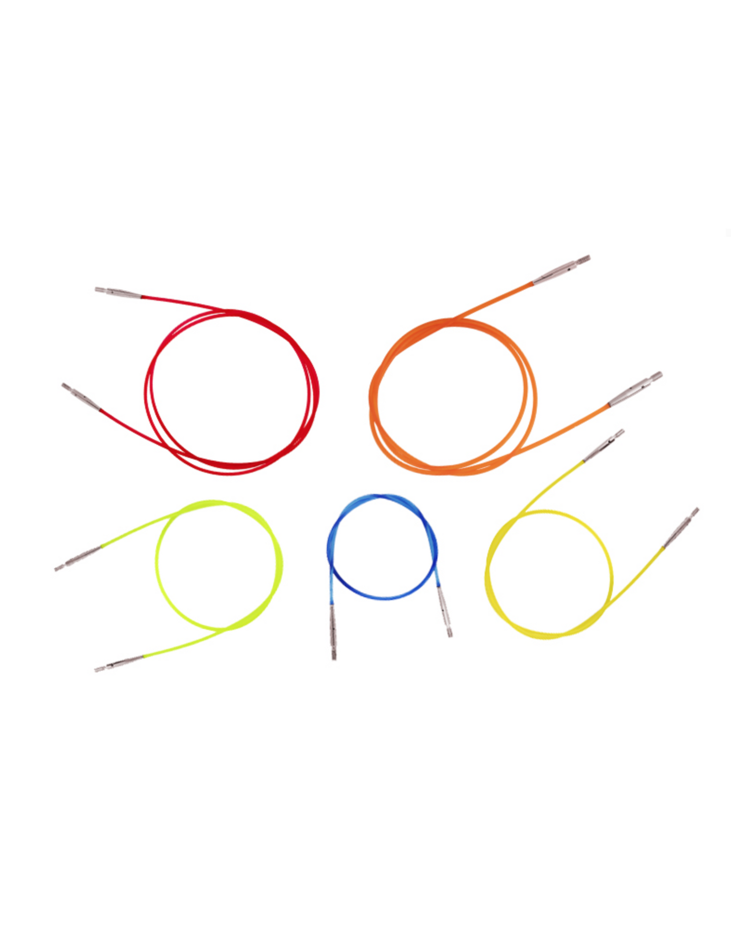 Designed to be suitable for all of KnitPro's interchangeable shanks, these resilient and flexible cables work without kinks or twists, making it even easier to knit your projects in the round. When the shanks are attached firmly the joins are almost seamless, so you can be sure of a quality knitting experience, whatever you're making. Featuring a specially designed "key" to tighten your join and and ensure your needle stays connected, all KnitPro cables come with two end caps to keep your knitting safe when you need to switch projects. Available in black, purple, and even colour-coded lengths.