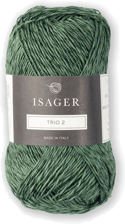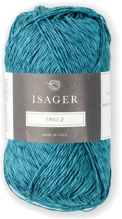 Cool & crisp Trio 2 is a perfect choice for warm weather knits that are breathable & comfortable to wear.  The blend of linen, cotton & Lyocell gives garments beautiful stitch definition & just the right amount of drape.  Trio 2 is gorgeous knit alone, held double or even triple.  The yarn also pairs well held together with other Isager yarns such as Alpaca 1 & Alpaca 2 to create stunning knit fabrics.