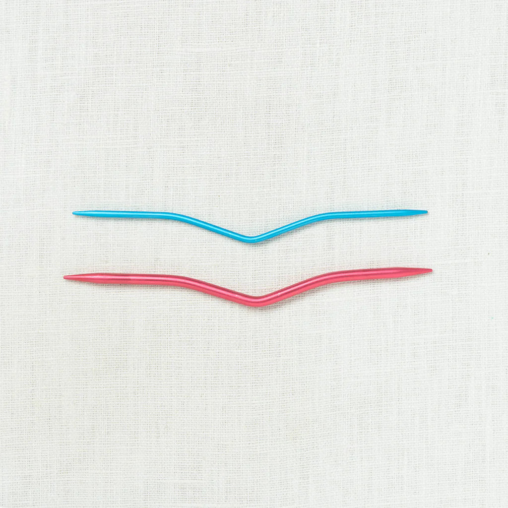 Relax & knit beautiful cables with these ultra smooth cable needles. Crafted from high-grade aluminum, the polished surface & tapered tips ensure stitches glide effortlessly. The perfect size curve of the needles ensure that stitches are held safely, yet easy to access when you are ready to knit them.