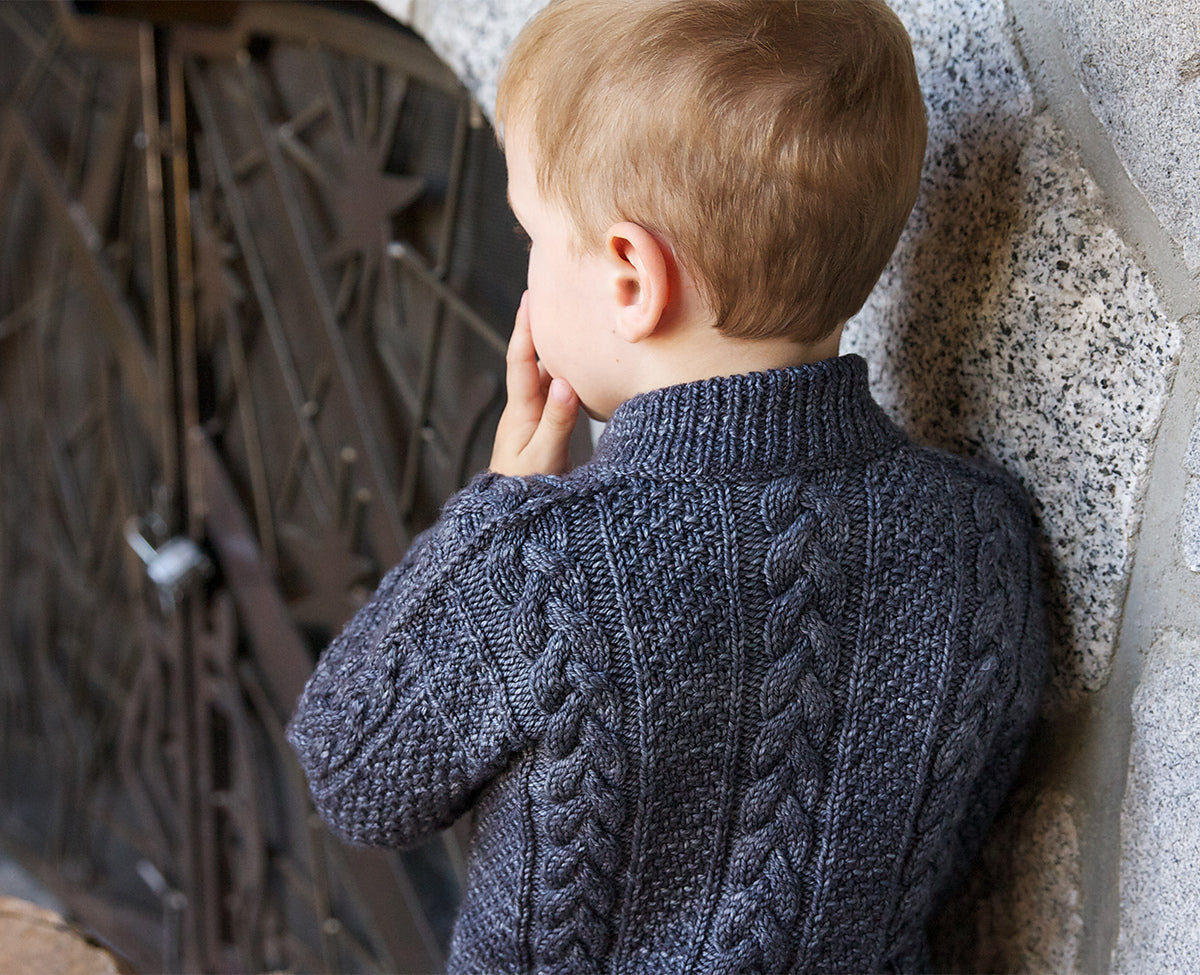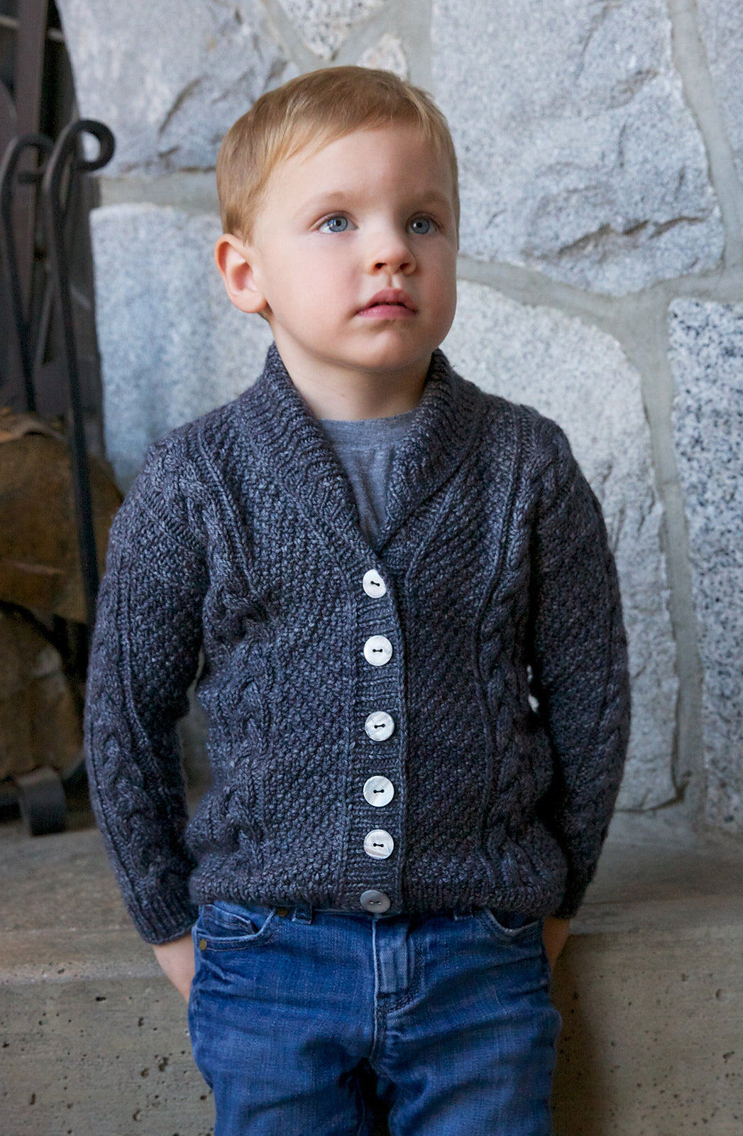 Whenever we went camping as a kid my Dad wore an old wool cardigan, machine made, passed down from his father. It was a timeless piece that inspired one for my little boy Jones