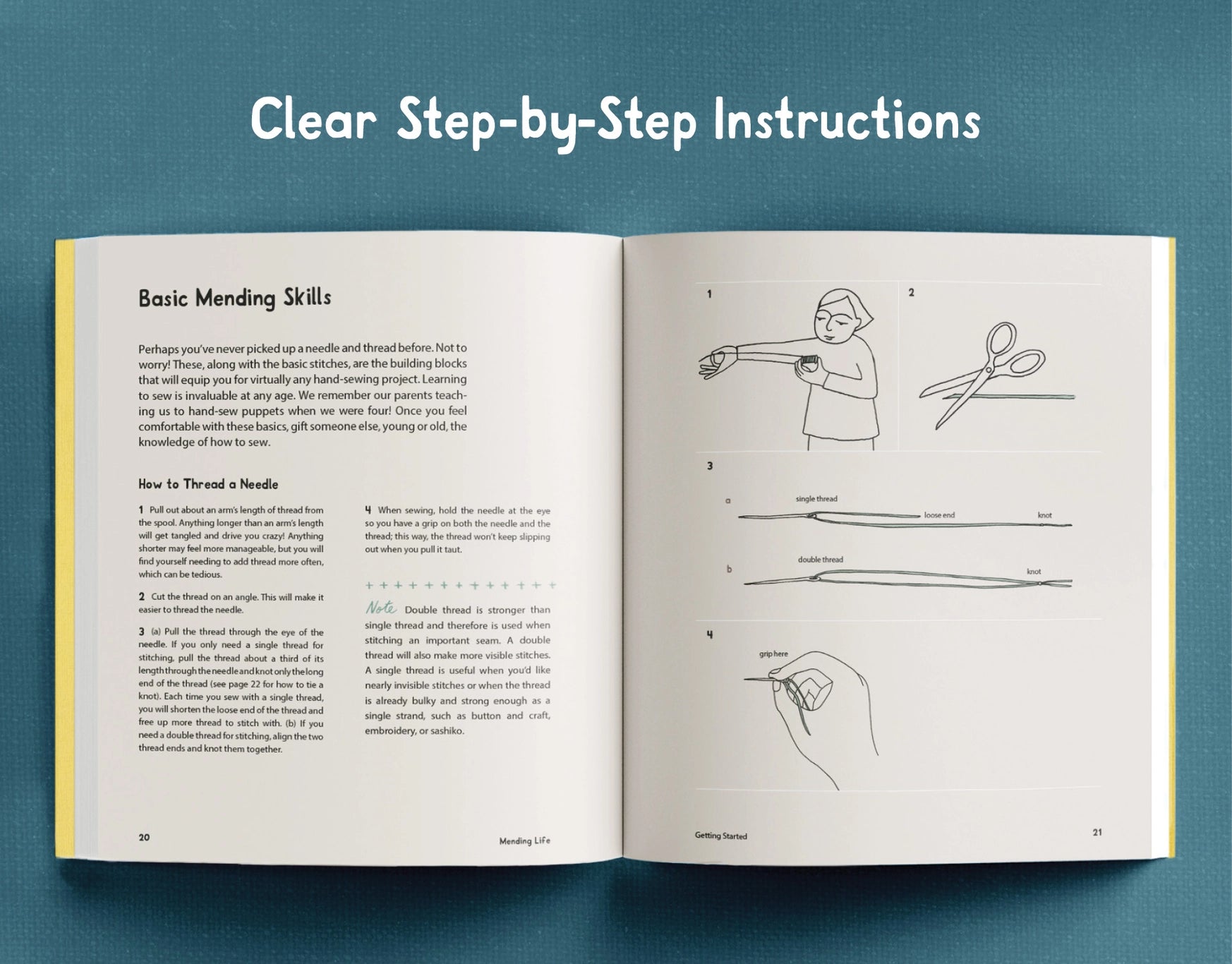 - Basic Mending Skills – how to thread a needle, how to tie knots, and basic stitches