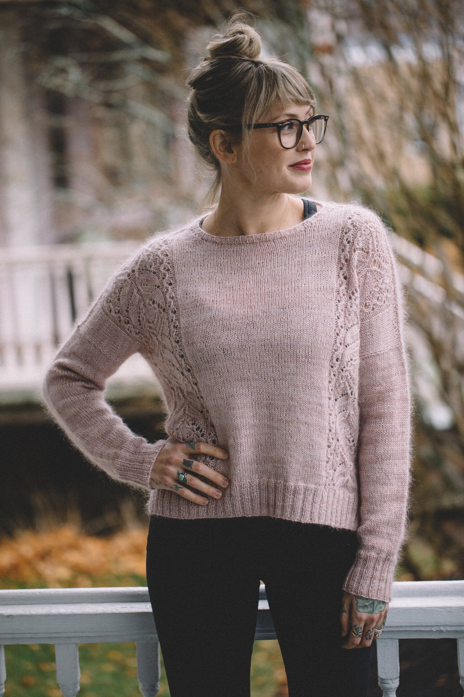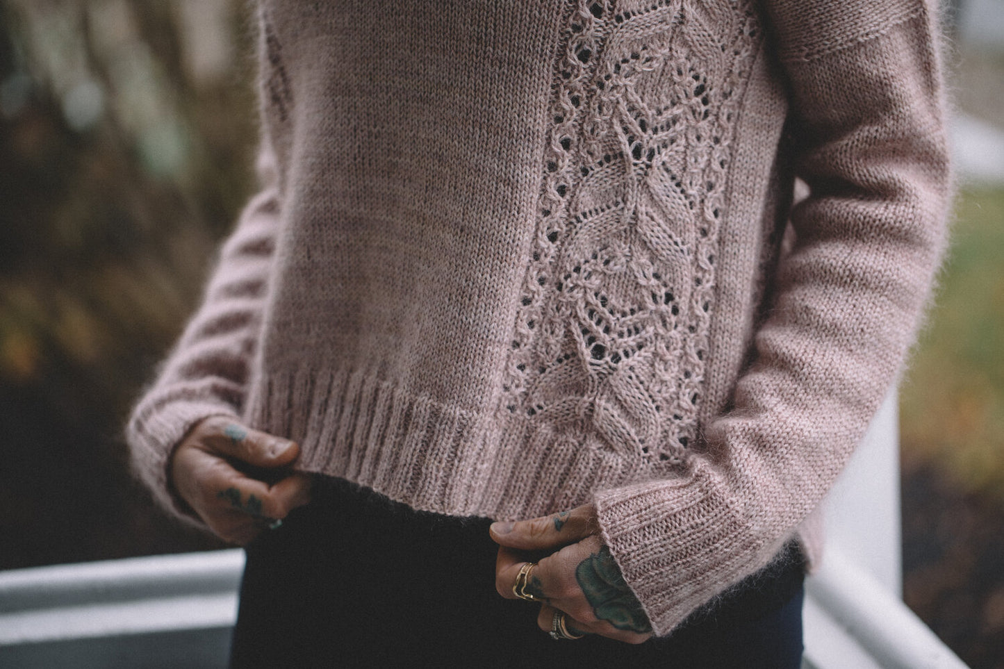 Pink fizz combines a mohair halo with beautiful lace and a relaxed fit for the perfect cozy pullover that leaves you feeling a little bit glamorous and totally cozy! Knit from the bottom up and seamlessly except for the underarms, this sweater showcases a drop shoulder style with positive ease in the body and slim sleeves. The lace pattern makes this sweater more advanced, please see below for a list of techniques used in this pattern.
