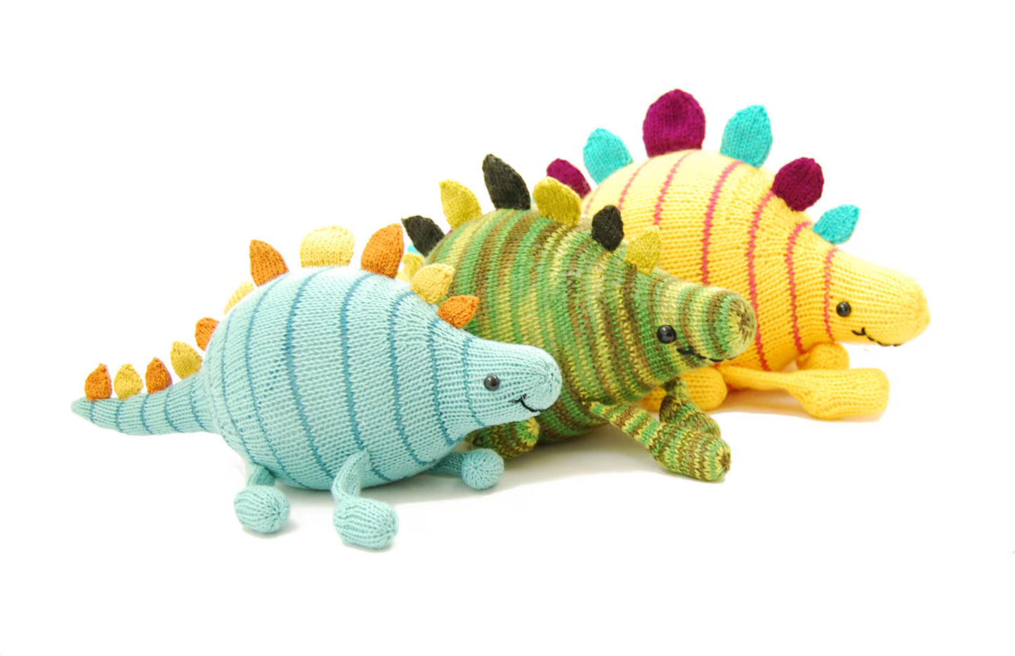 Now you can knit your very own stegosaurus (with or without carrots in his ears)! I know, a stegosaurus is like the coolest thing to knit ever, right? I have continued with my knitter mind reading, haven't I? This pattern rounds out my prehistoric party of three dino patterns, the last picture here is with Basil the Brontosaurus and Terence the T-Rex for a full dino-rama.