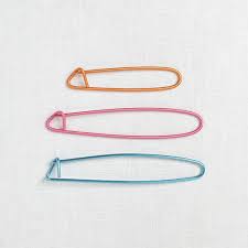 No more waste yarn! Holding stitches is now a breeze with these smooth, aluminum, locking stitch holders. Includes three “safety pin” style stitch holders in three different sizes.