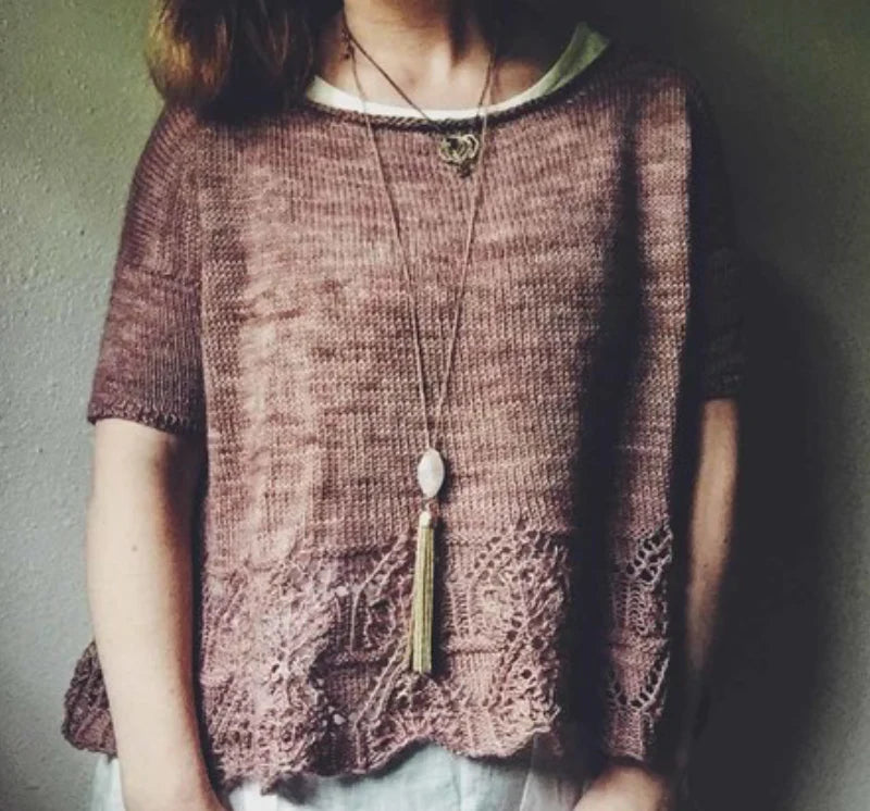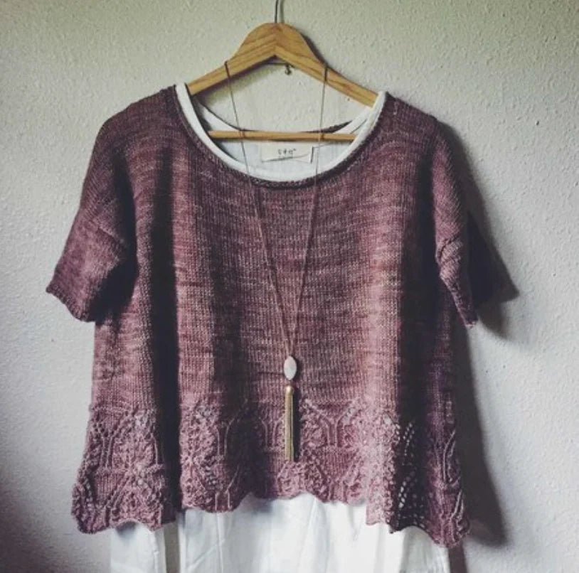 Tegna is a sweet boxy tee by Caitlin Hunter with a beautiful lace hem detail
